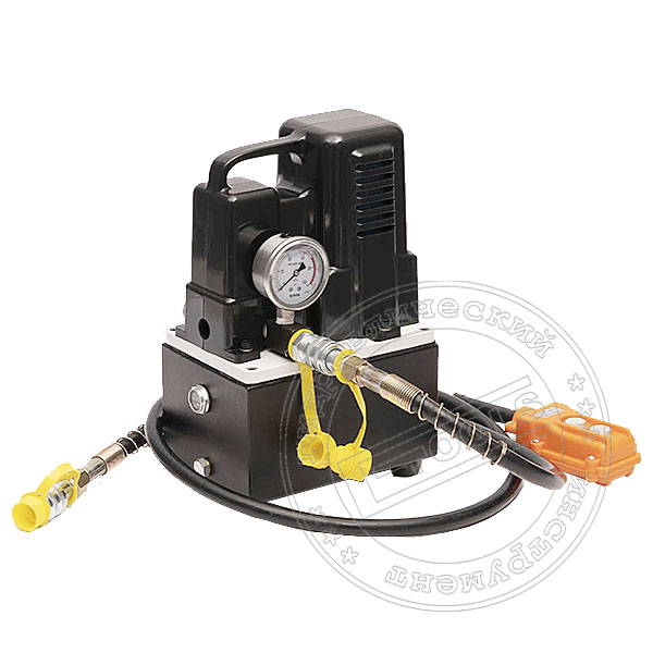 обеспечивает для использование в качестве внешнего источниками давления (до 700 атм) в гидравлических системах одностороннего действия с пружинным возвратом. Особенность данной модели маслостанции заключается в Подаче \ Сбросе давления гидравлического потока в канале производится распределителем с ручным управлением. В стандартной комплектации маслостанция оснащена манометром в виброустойчивом исполнении до 1000 атм, регулируемым предохранительным клапаном давления расположенный в основание гидравлического распределителя.Описание гидравлической насосной станции