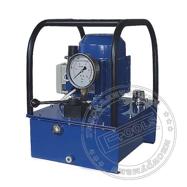 Выбор режима работы подача / сброс обеспечивается двух позиционным ручным распределителем размещенного на верхней крышки станции. Регулируемый клапан ограничения давления вынесен в корпус распределителя гидравлического обеспечивает оперативную настройку необходимого давления при подключение гидравлических цилиндров (модулей) рассчитанных на давление ниже 700 атм.