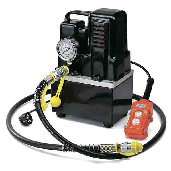 Станция насосная гидравлическая СНГ-1200W с электромагнитным клапаном управлением подачей / сбросом давления рабочей жидкости в гидравлических системах одностороннего действия. Гидравлический насос с электроприводом обеспечивает подача в две ступени гидравлической жидкости с высокой скоростью без нагрузки до 3.0 л/мин для прохождения холостого хода рабочего инструмента. Непосредственно рабочий цикл происходит при подаче 0.4 л/мин, что для основной массы электромонтажного гидравлического инструмента с рабочим объёмом не более 150 см3 является достаточным по скорости для выполнения операций по резке кабеля, опрессовке кабельных наконечников и пробивке отверстий в металле.