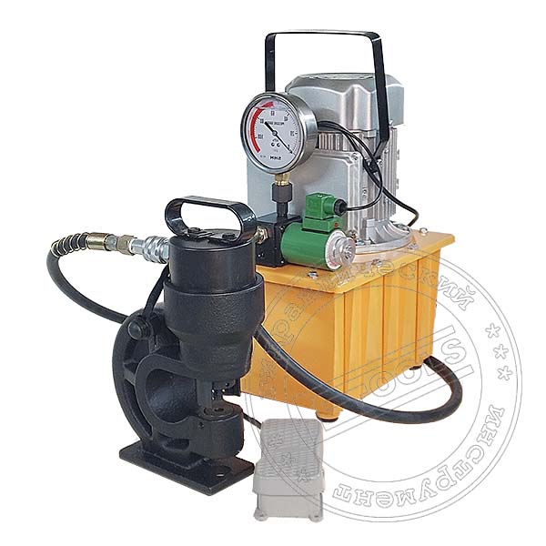 В качестве гидравлического привода комплекта для перфорации токоведущей шины СНГ + ШП-95+ используется гидравлическая насосная станция одинарного действия с электроприводом. Управление потоком, производится педалью электромагнитного гидрораспределителя рабочим давлением 700 кг/см2: :