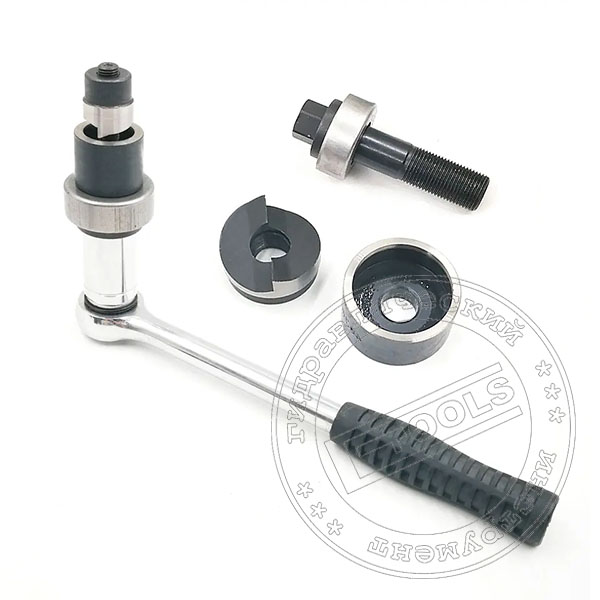 Инструмента для пробивки отверстий состоит из двух винтовых шпилек диаметром 20 мм и 10 мм обеспечивающих развитие втягивающего усилия за счет вращения с помощью трещоточного рычага и набора комплектов матриц / пуансон. Предварительно пробивается (сверлится) в необходимому месте отверстий диаметром 11 мм. Пробивается отверстия диаметром 21.8 мм с помощью комплекта из набора малой винтовой шпильки и комплекта матриц / пуансон размером 21.8. Полученное отверстий позволит использовать большую шпильку диаметром 20 мм, необходимую для всех остальных комплектов матриц / пуансон входящих в набор инструмента MAP-60.