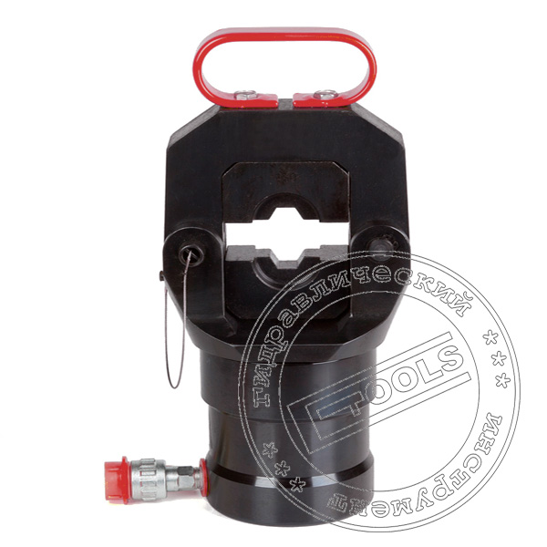 Электромонтажный гидравлический пресс ПГ-1000 предназначены для опрессовки наконечников и гильз проводов и тросов линий электропередач и открытых распределительных устройств. Комплектуются набором сменных шестигранных матриц. Поворотная рабочая головка пресса с откидной скобой поворотная на 360°. Пружинный возврат силового цилиндра гидравлического пресса, компактность и малая масса, позволяет вести работы в любом удобном пространственном положение для оператора непосредственно на месте выполнения электромонтажных работ по опрессовке кабельных наконечников шестигранником сечением 400, 500, 630, 800, 1000 мм2, а так же возможна опрессовка аппаратных зажимов кругом (матрицы изготавливаются под заказ), типа: А2А и А4А сечением 150, 185, 240, 300, 400 мм2. Может работать совместно с любой гидравлической станцией или насосом одинарного действия.