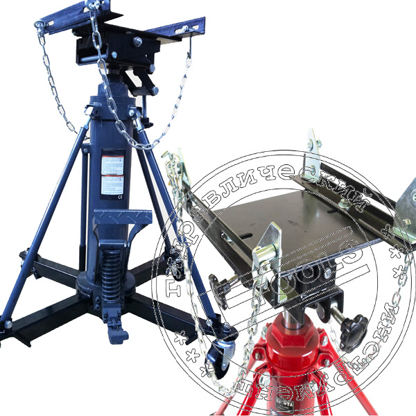 Гидравлические трансмиссионные стойки оборудование малой механизации — предназначено для выполнения различных работ, связанных с монтажом и демонтажем коробок передач, ремонтом, заменой и обслуживанием выхлопной системы, и ремонтными работами по двигателю, с другими элементами системы трансмиссии. Этот механизм просто незаменим при выполнении какого-либо ремонта навесного оборудования двигателя транспортных средств. Даннное оборудование является разновидностью гидравлических домкратов. Поскольку трансмиссионные стойки работают по принципу гидравлического домкрата, такое оборудование позволяет поднимается груз и фиксируется на необходимой высоте, приводом стоек является гидравлическая система подъема и опускания. Основные элементы устройства трансмиссии стойки: корпус, силовой цилиндр со встроенным ручным насосом и рабочей жидкостью (как правило, гидравлическое масло). Корпус гидравлического домкрата является направляющим цилиндром и резервуаром для рабочей жидкости. Силовой цилиндр трансмиссионной стойки плунжерного типа с гравитационным возвратом. Усиление от приводной педали передается через рычаг в нагнетающий насос. Движение вверх педали приводит к всасыванию рабочей жидкость из резервуара в полость насоса, а при опускание нагнетается в полость рабочего цилиндра, выдвигая шток. Обратному перетеканию жидкости препятствуют всасывающий и нагнетательный клапаны.